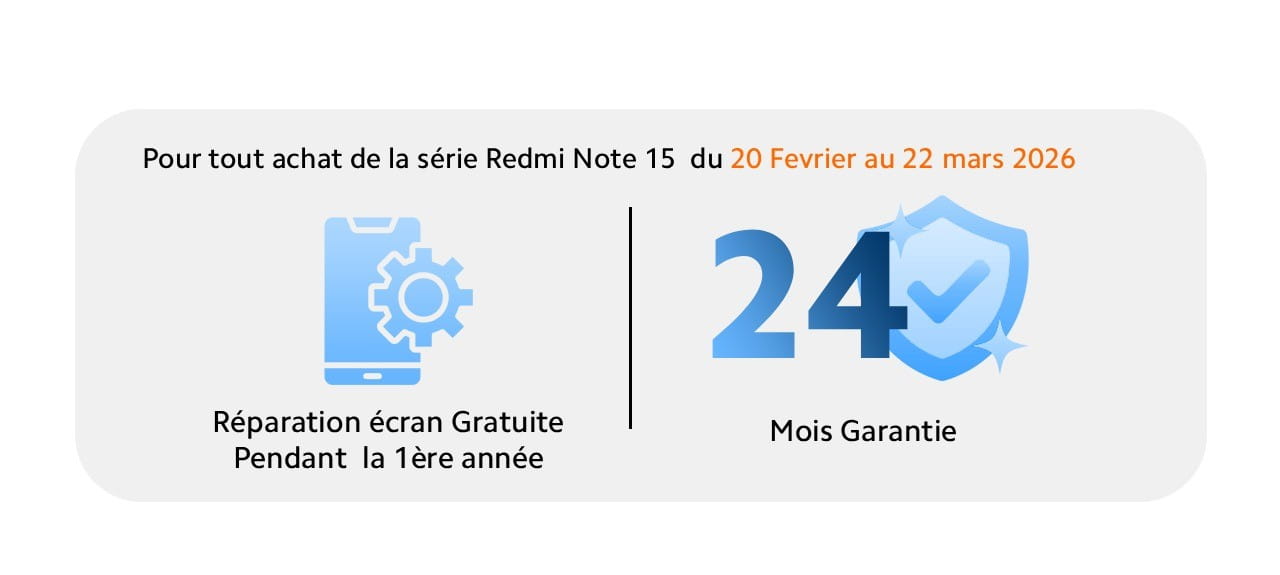 Le Redmi Note 15 Pro 5G se distingue par sa batterie haute capacité de 6 580 mAh, intégrant une technologie innovante en silicium-carbone qui offre une densité énergétique élevée tout en conservant un design fin et léger. Pensé pour accompagner votre quotidien sans interruption, il propose jusqu’à 2 jours d’autonomie, vous permettant de rester connecté plus longtemps. Profitez de vos contenus sans contrainte avec jusqu’à 27 heures de lecture vidéo et près de 108 heures d’écoute musicale. Grâce à ses multiples systèmes de protection et d’optimisation de la charge, la batterie est conçue pour préserver ses performances sur le long terme, avec une durabilité pouvant aller jusqu’à 6 ans d’utilisation fiable.
